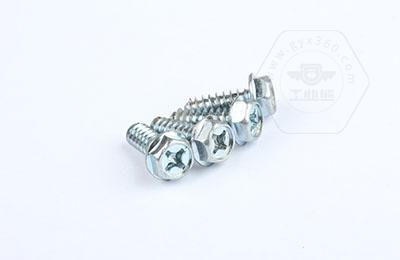 8.8級鍍藍白鋅 十字槽凹穴帶墊外六角自攻平尾螺釘 十字槽凹穴帶墊三組合螺絲的產(chǎn)品圖片